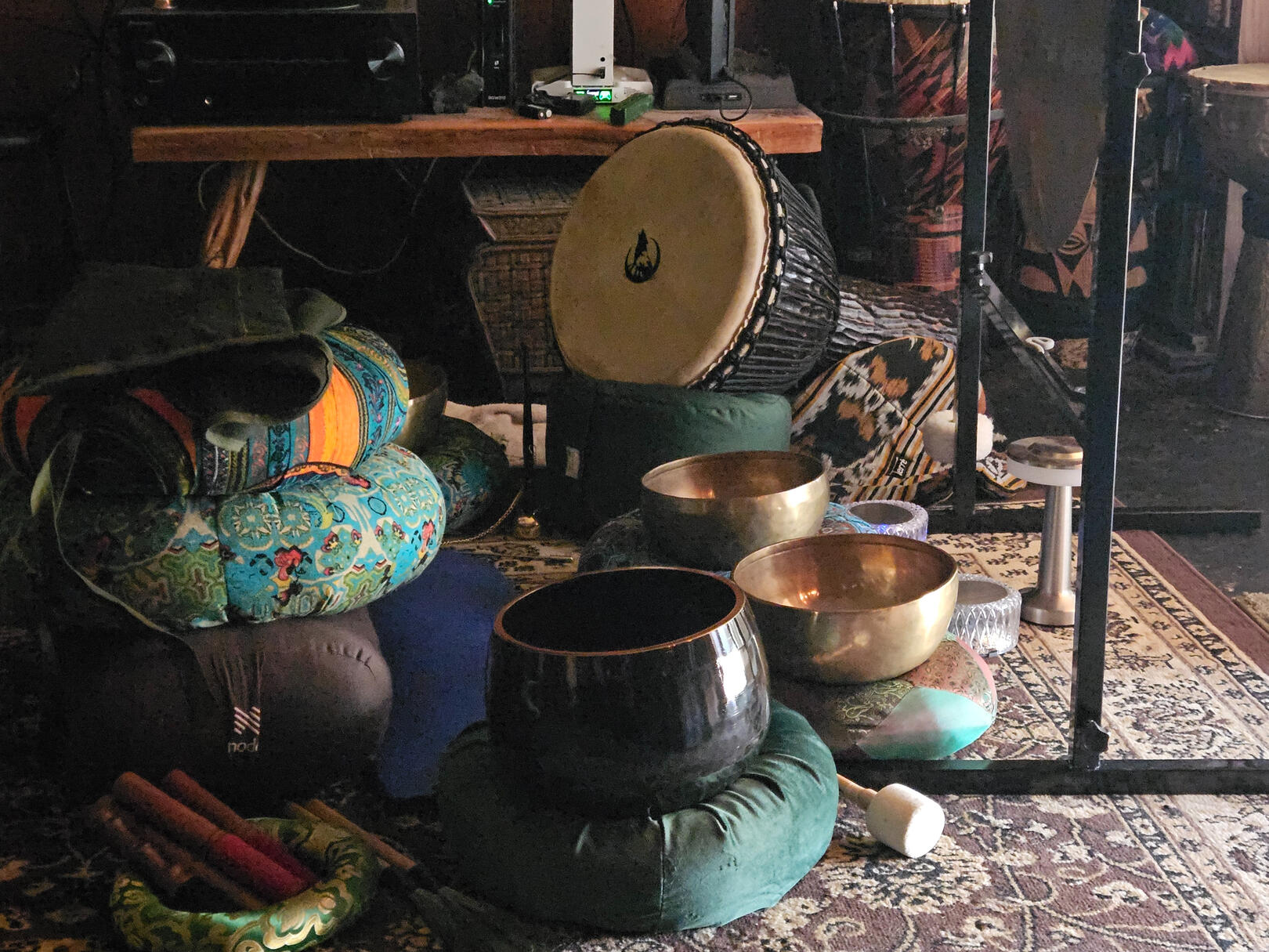 Our sound baths include gongs, crystal and Tibetan singing bowls, and rhythmic drums to create immersive vibrational experiences that soothe the nervous system and recalibrate subtle energy fields. Participants rest comfortably while layered tones and frequencies guide the body into meditative states, releasing tension, enhancing focus, and encouraging profound inner stillness and rejuvenation.